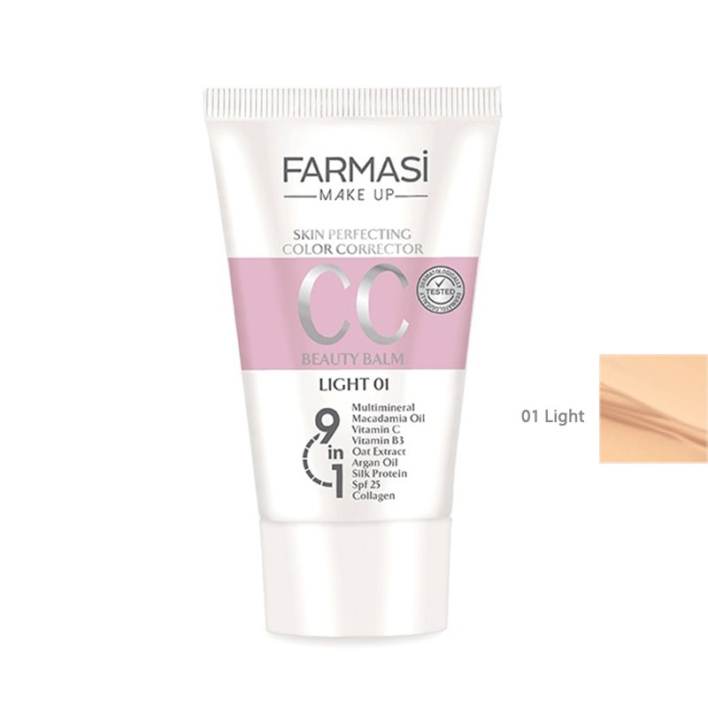 کرم CC یا (color correcting) به معنای اصلاح کننده رنگ پوست بوده و همانطور که از نام آن مشخص است در پوشاندن لکههای پوست و اصلاح تیرگیها کمک کرده و رنگ پوست را یکدست میکند. این کرمپودر 9 کاره غنی شده با کلاژن، روغن آرگان، عصاره جو، ماکادمیا و پروتئین ابریشم است و به علت وجود ویتامینهای c و B3 در آن خاصیت جوانساز نیز برای پوست دارد.